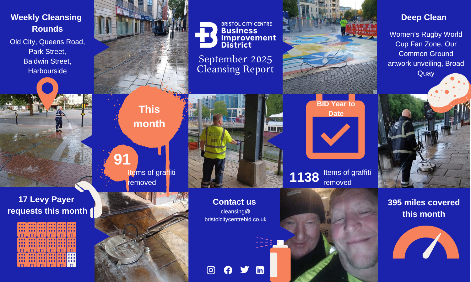 September was another busy month for the city centre cleansing team as they covered 395 miles on their weekly cleansing rounds and removed 91 items of grafitti.